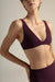 Sporty wine-colored bikini top with wide straps and a z closure system featuring two back adjustment positions, gold-plated accessories, removable cups, and uv-protective fabric.. Color burgundy, Ref. 0B55V61Type of fabric: KnittedHas lining: YesECO Product: NotWith UPF 50+ protection: YesComposition: 75%...