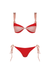 Bra style top with adjustable shoulder straps with knotted detail and matching self tie strappy cheeky bottom. This bikin comes with a canvas boibá pouch. Removable Padding/ Adjustable Straps/ Shimmer Fabric Details/ Moderate Coverage Model is 1.77 cm, bust 84...