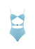 The Alida One Piece swimsuit in shiny blue is a bold and modern statement, made to stand out under the sun. Featuring cut-out details at the front and back and a central crystal-like acrylic bead accent, this one-piece creates a...